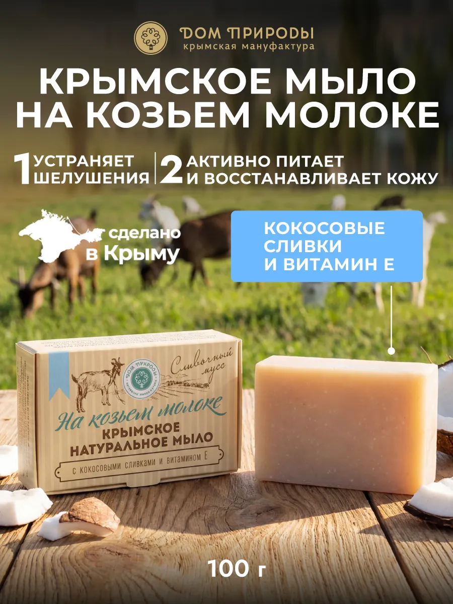 Натуральное мыло с мягким сливочным ароматом станет идеальным дополнением к вашему домашнему уюту. Мыло изготовлено из натуральных компонентов, без использования химикатов и красителей. Крымское мыло мягко очищает и оставляет кожу чувствительной и нежной.