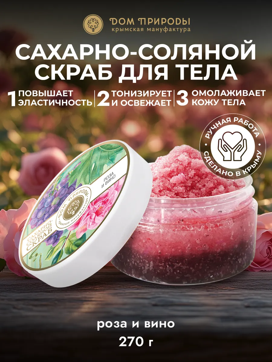 Классический скраб сахарно-соляной для тела с натуральными ингредиентами поможет вам очистить и тонизировать кожу. Сахар и соли мягко снимут грязь и Dead cells, а роза и вино добавят мягкость и приятный аромат. Этот скраб подходит для ежедневного использования и идеален для тех, кто ценит натуральные ингредиенты и хочет ухаживать за своей кожей в домашних условиях.