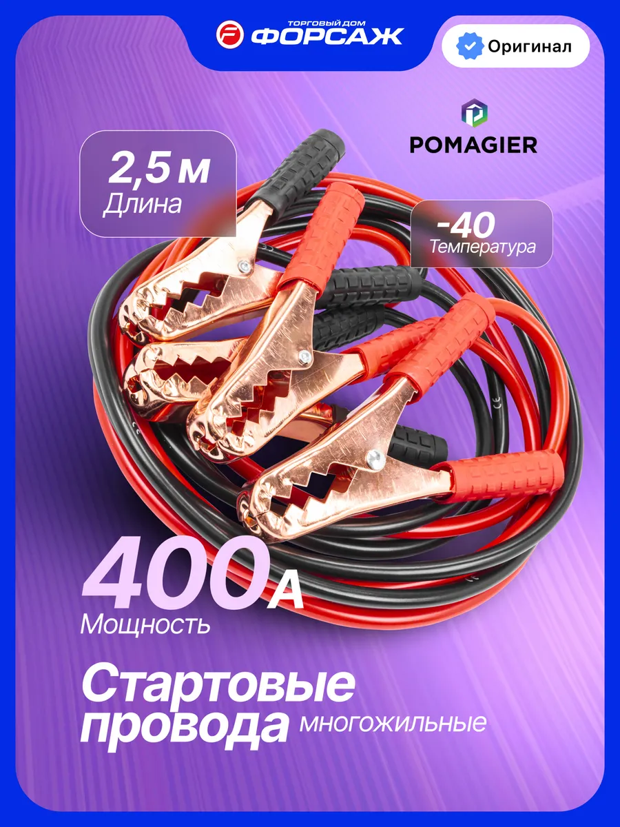 Стартовые провода 400А, 2.5м. FORSAGE OFFICIAL STORE