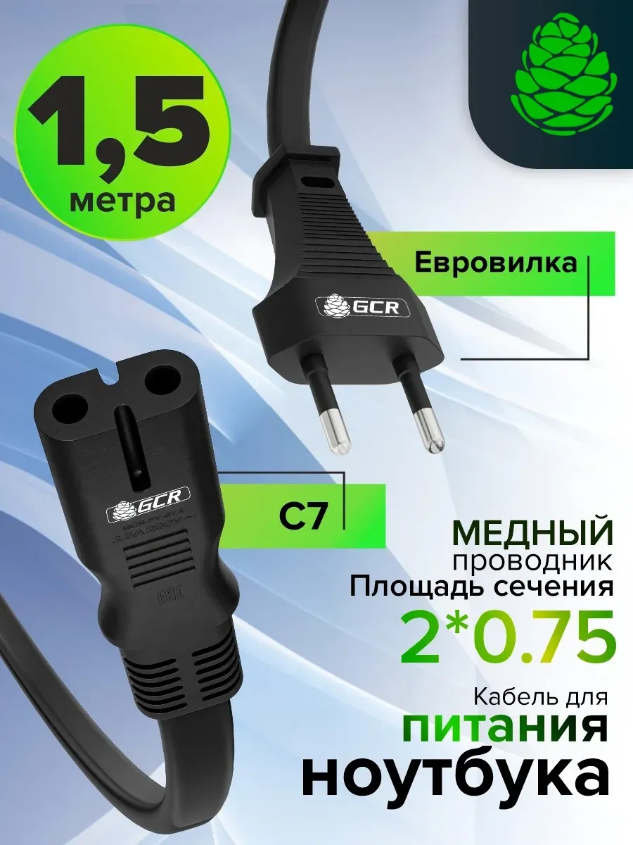 Сетевой провод питания 1.5м плоская вилка — C7 2*0,75mm медь. Официальный магазин GREENCONNECT