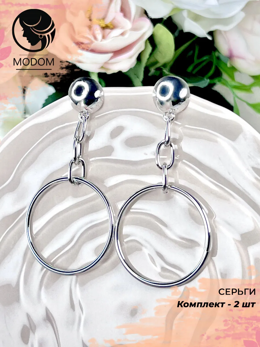 Свадебные длинные серьги крупные кольца на цепи на свадьбу. MODOM