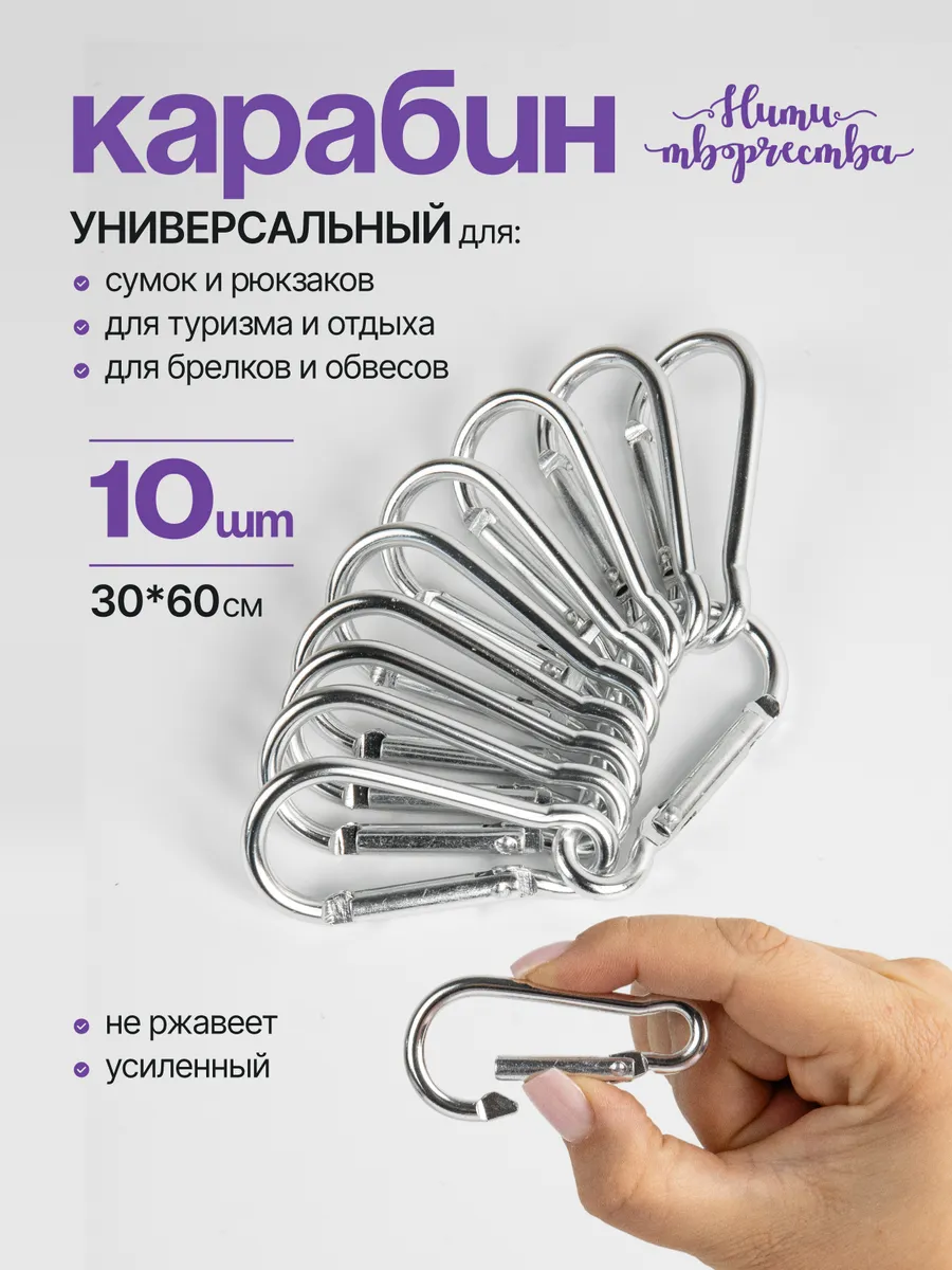 Карабин алюминиевый усиленный 10 шт для ключей рюкзака собак. Нити Творчества