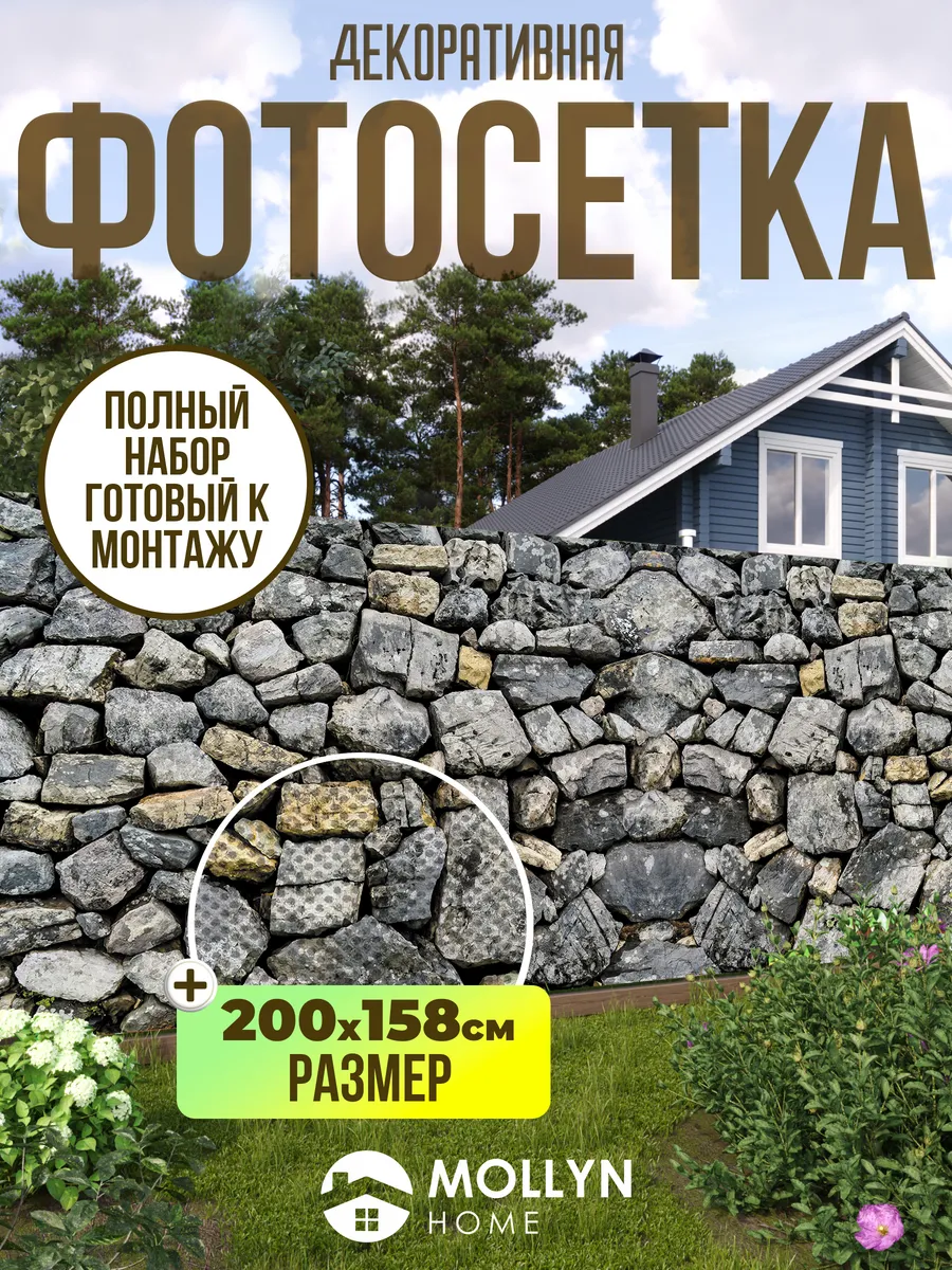 Фотосетка фотофасад для забора, 200х158 см, камни. Текстиль и декор от производителя