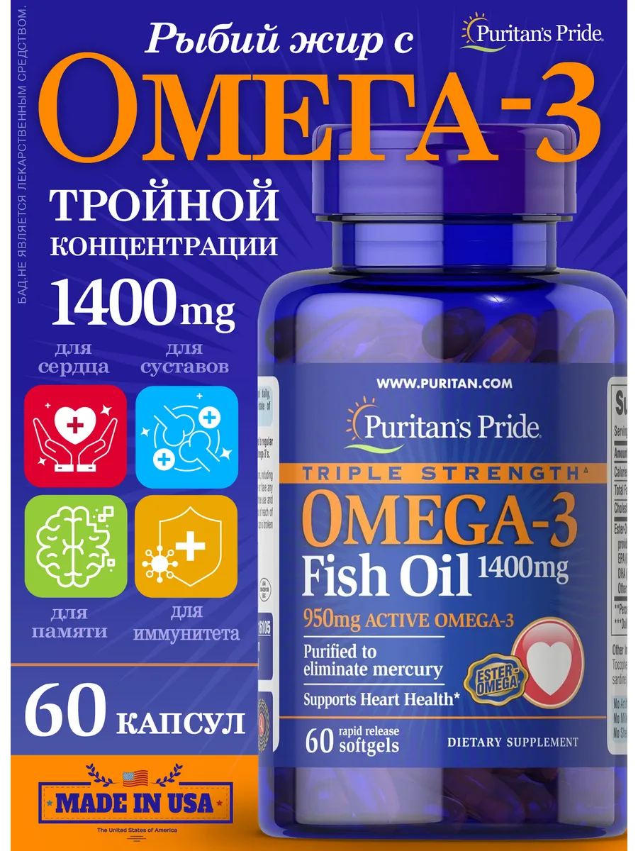 Получите оптимальный баланс омега-3 с рыбьим жиром TRUSTPHARMA. Этот продукт обеспечивает 1400 мг омега-3, в том числе 950 мг EPA и DHA. Рыбий жир поддерживает здоровье сердца, мозга и кожи. Подойдет для людей с повышенным уровнем тревоги и неврозов, а также для беременных и кормящих мам.