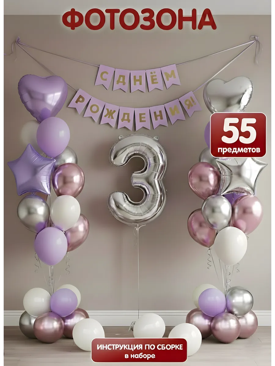 🔥 По акции «Рубли за отзыв» вы сможете вернуть 200 рублей на баланс Wildberries, если оставите отзыв о товаре «Набор воздушных шаров для фотозоны девочке 3 годика. Шарти».