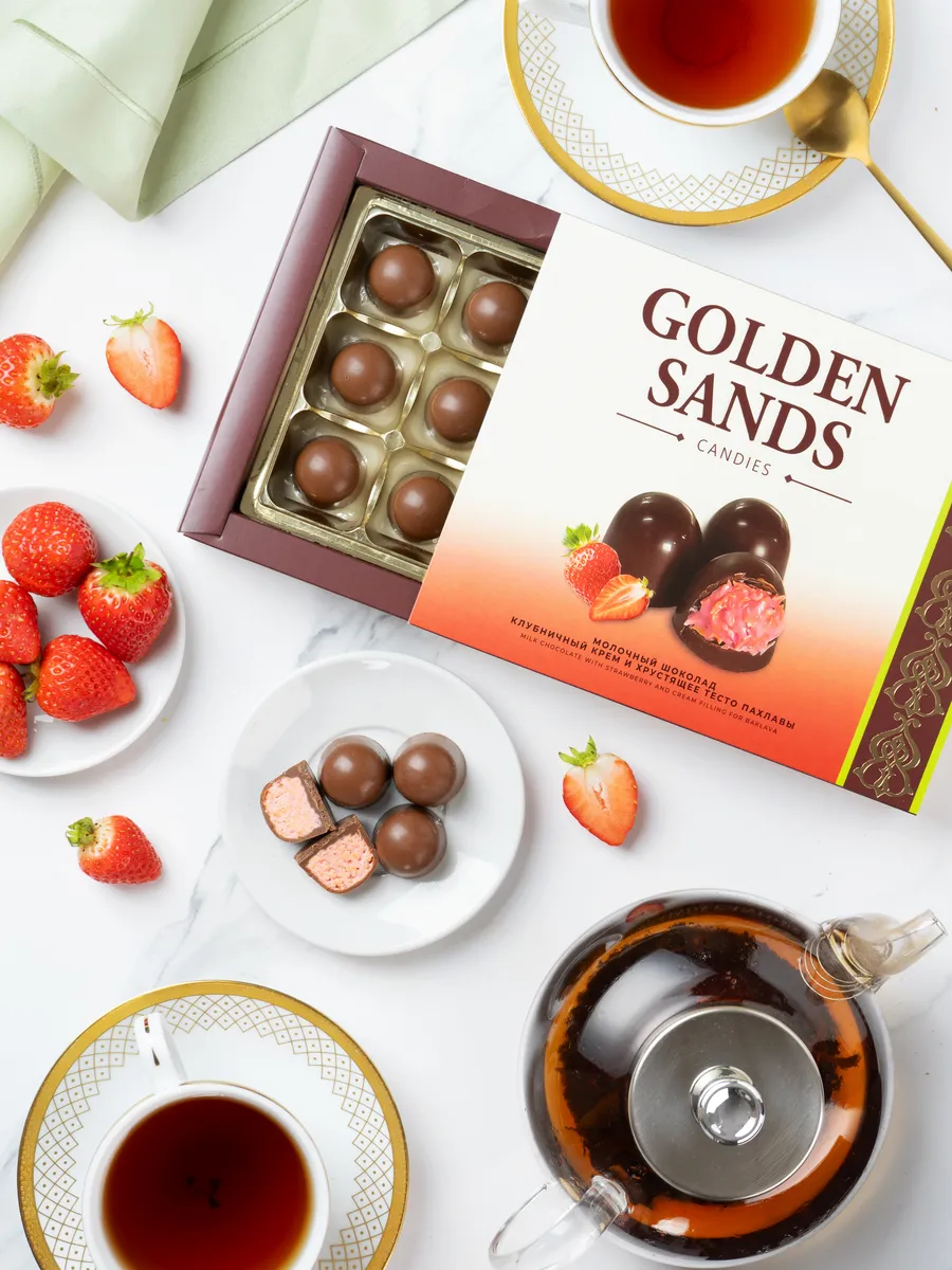 Конфеты шоколадные в подарочной коробке с клубничной пастой. Бехруз