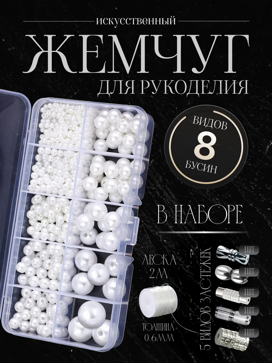 Набор бусин для рукоделия из искусственного жемчуга. PAPA CORD