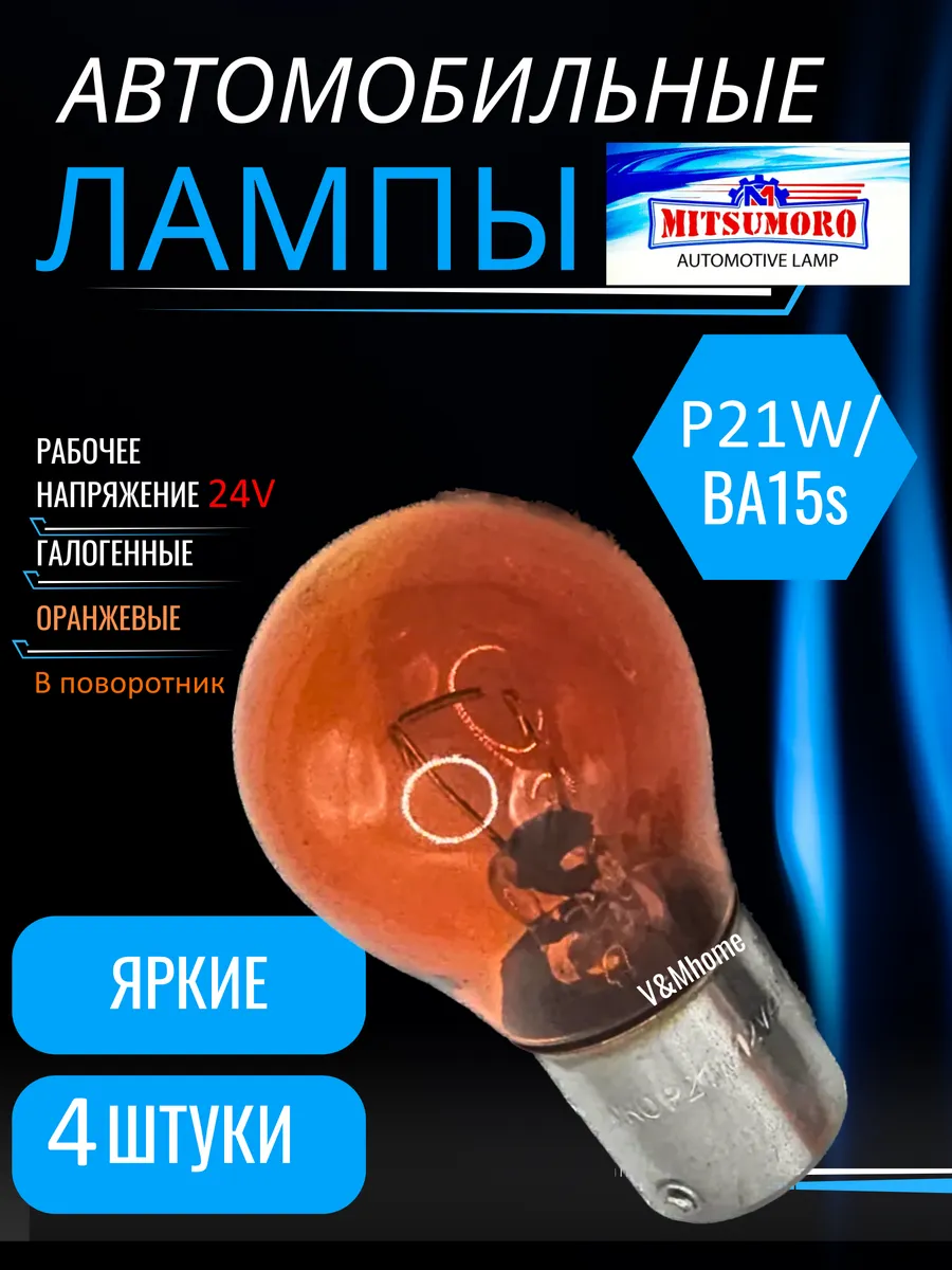 Лампы галогенные автомобильные p21w Ba15s 24V 4шт. V&MHome