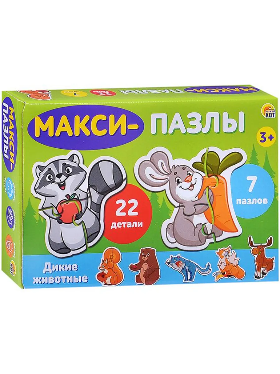 Макси-пазлы «Дикие животные» для детей, 7 пазлов, 22 детали. KoroBoom Shop