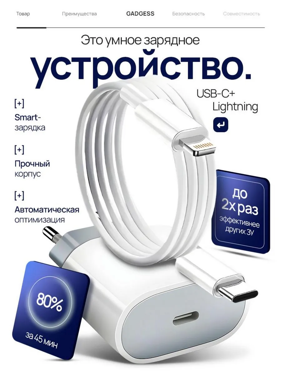 Быстрая зарядка для Iphone Lightning. Gadgess