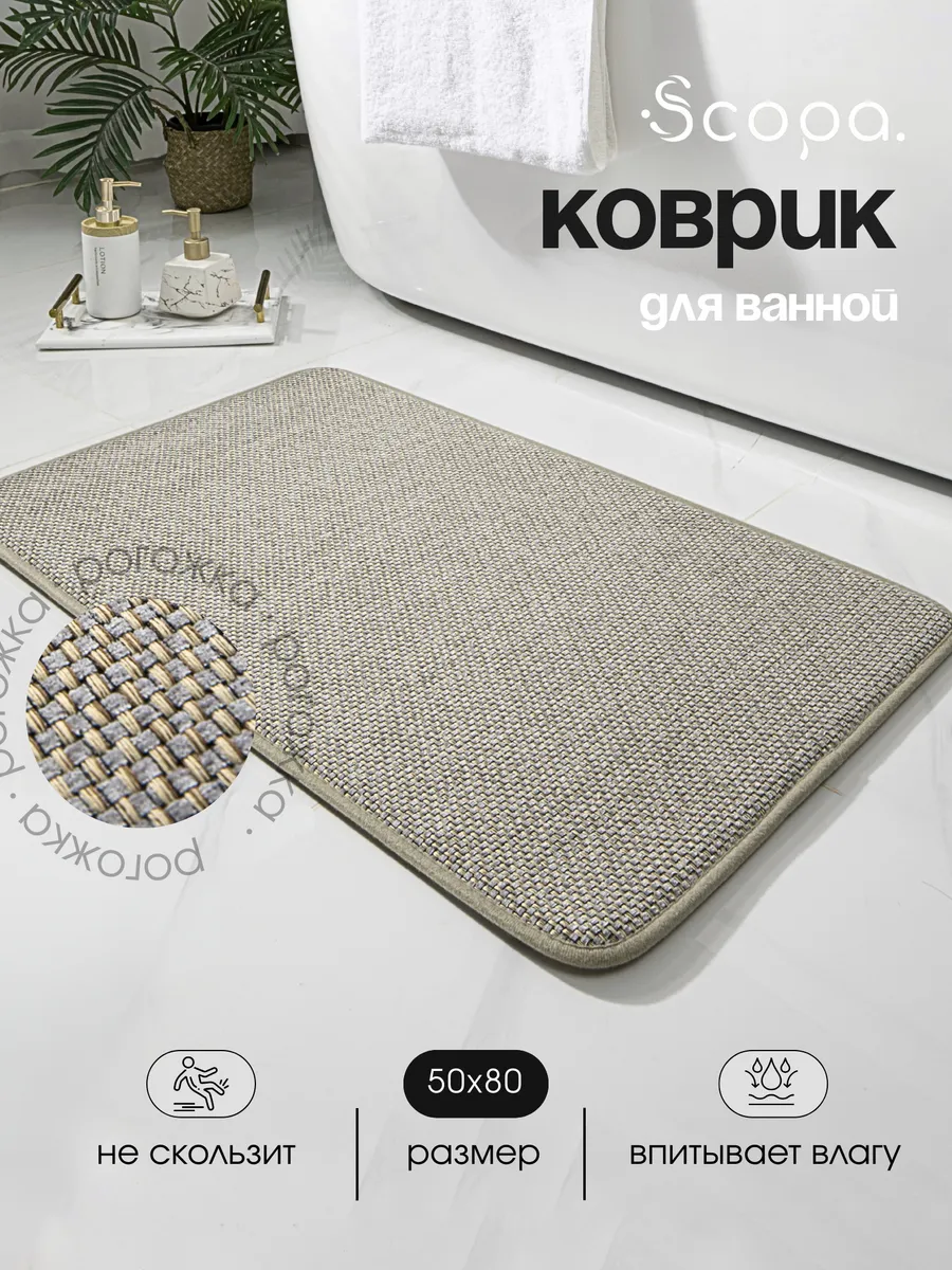 Коврик для ванной и туалета противоскользящий 50х80 см. Scopa Home
