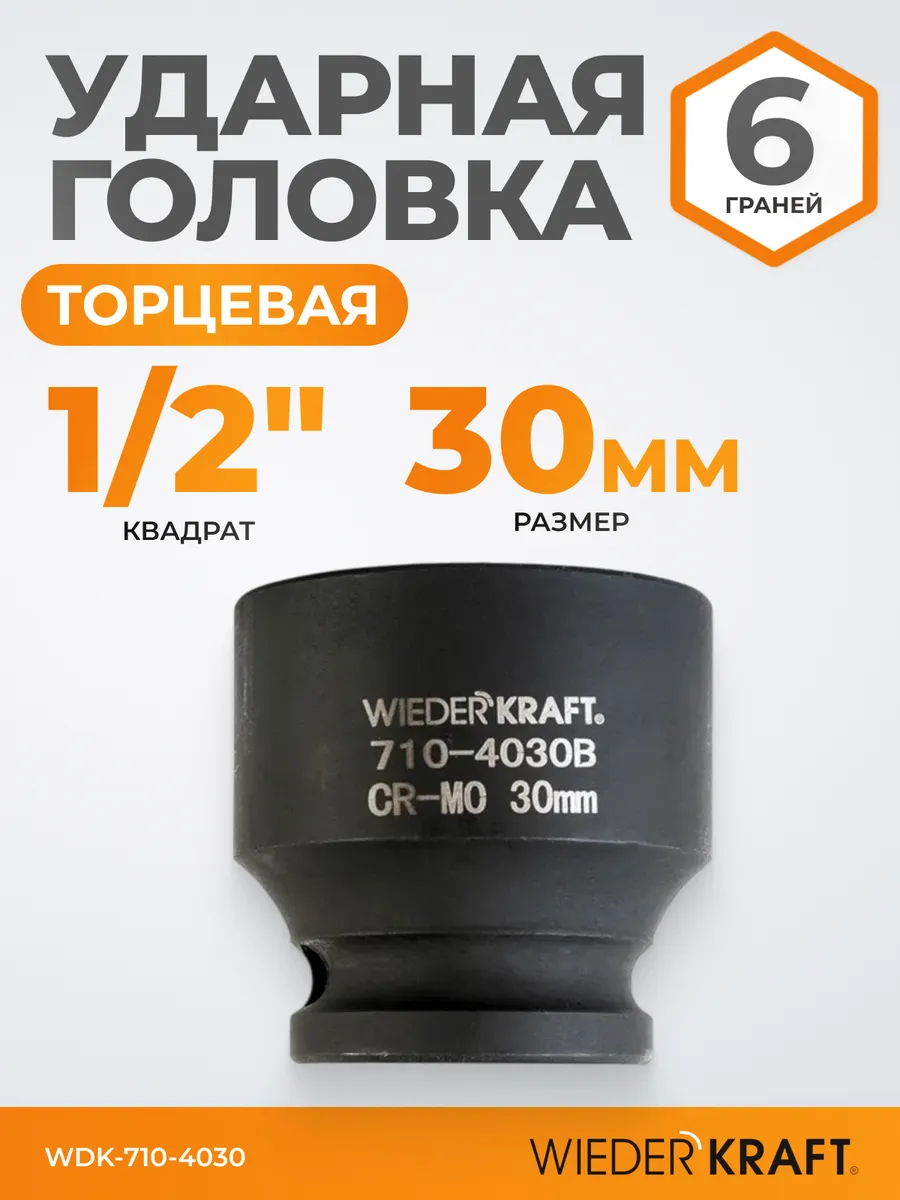 Головка торцевая ударная 1 2″, CrMo 30 мм, 6 граней. WIEDERKRAFT