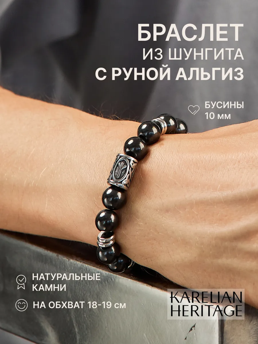🔥 По акции «Рубли за отзыв» вы сможете вернуть 300 рублей на баланс Wildberries, если оставите отзыв о товаре «Браслет на руку из натуральных камней шунгита с руной. Karelian Heritage».