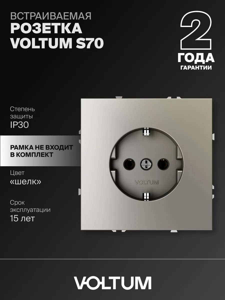 Розетка встраиваемая с заземлением 16А цвет шелк. VOLTUM — Официальный магазин