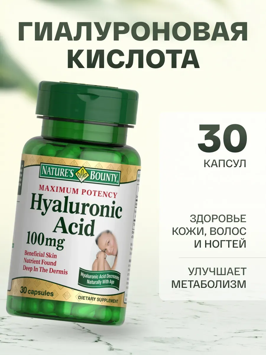 Гиалуроновая кислота, кожа, волосы 30 капсул 100 мг. Original supplements