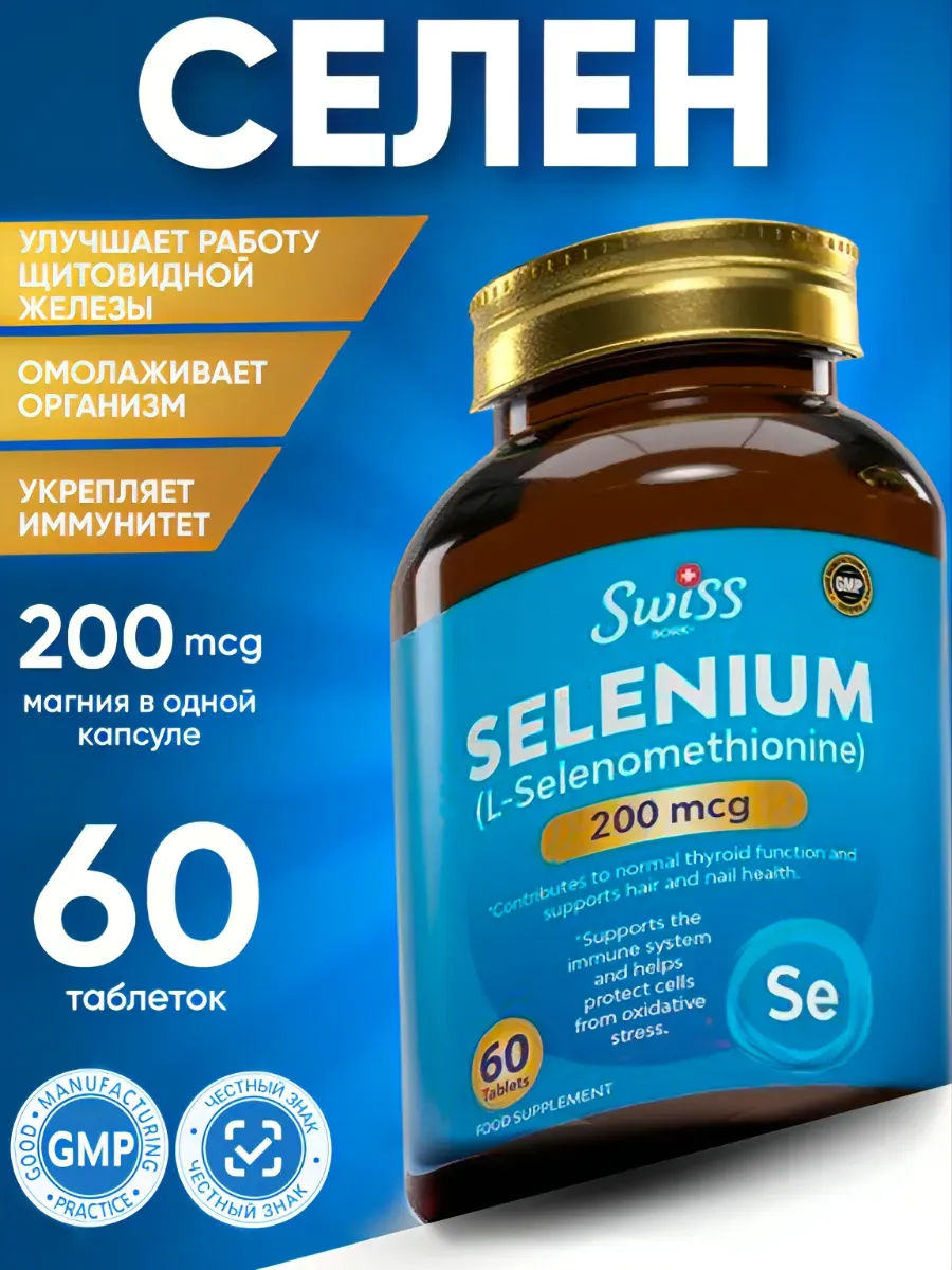 Селен 200 мкг L-Селенометионин. HADYA