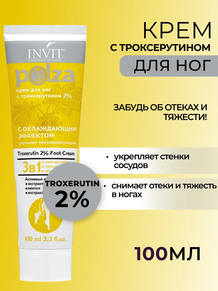 Крем для ног от отеков, для здоровья вен, с троксерутином 2%. INVIT. ИСКУССТВО УХОДА