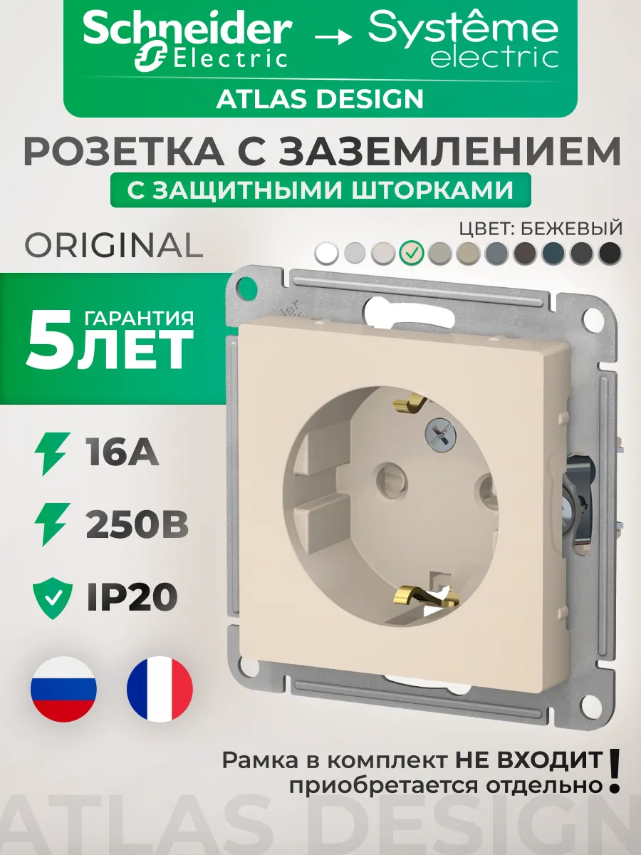 Розетка с защитными шторками и заземлением бежевая. Элекмакс. Розетки и выключатели