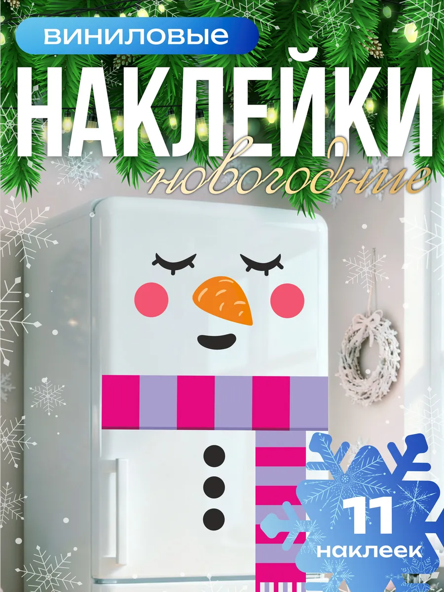 🔥 По акции «Рубли за отзыв» вы сможете вернуть 100 рублей на баланс Wildberries, если оставите отзыв о товаре «Наклейки на холодильник новогодние, снеговик. наклейки на стены».