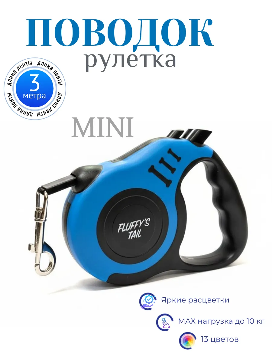 Поводок рулетка для мелких собак, кошек 3 м. Fluffy’s Tail