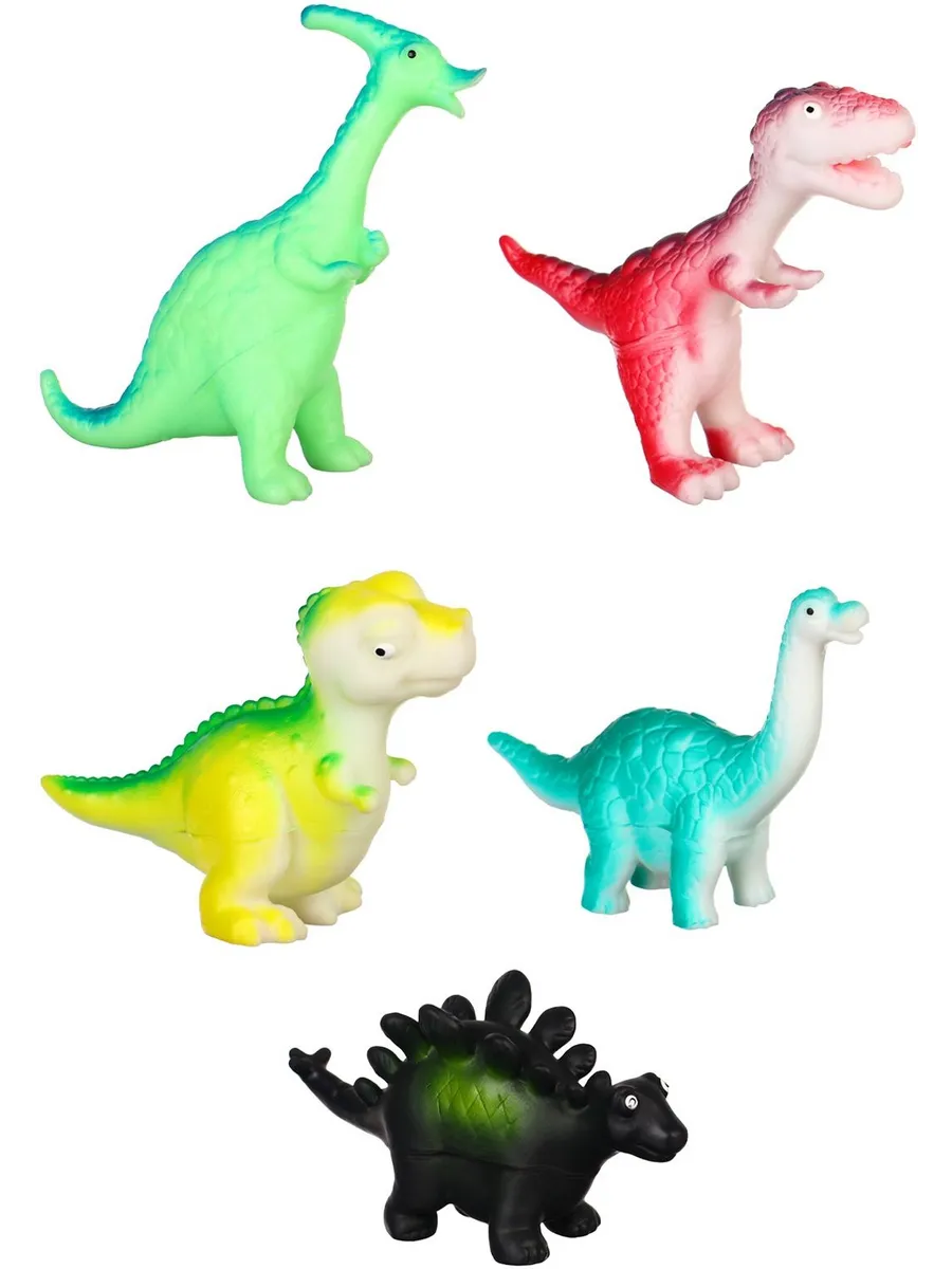 Игрушки для купания Динозаврики, с пищалкой, 10 см, 5 шт, 3+. KoroBoom Shop