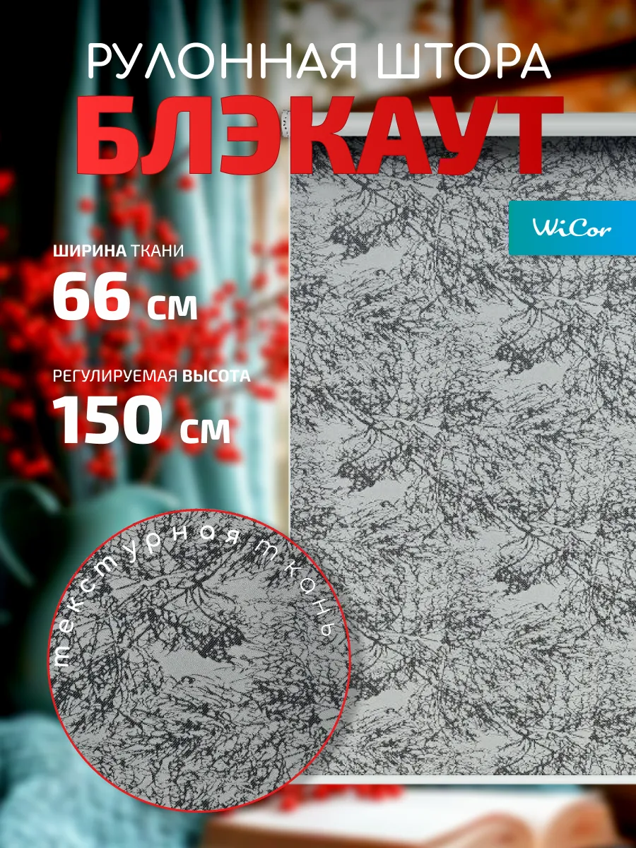 Рулонная штора Блэкаут 66х150 см. 1