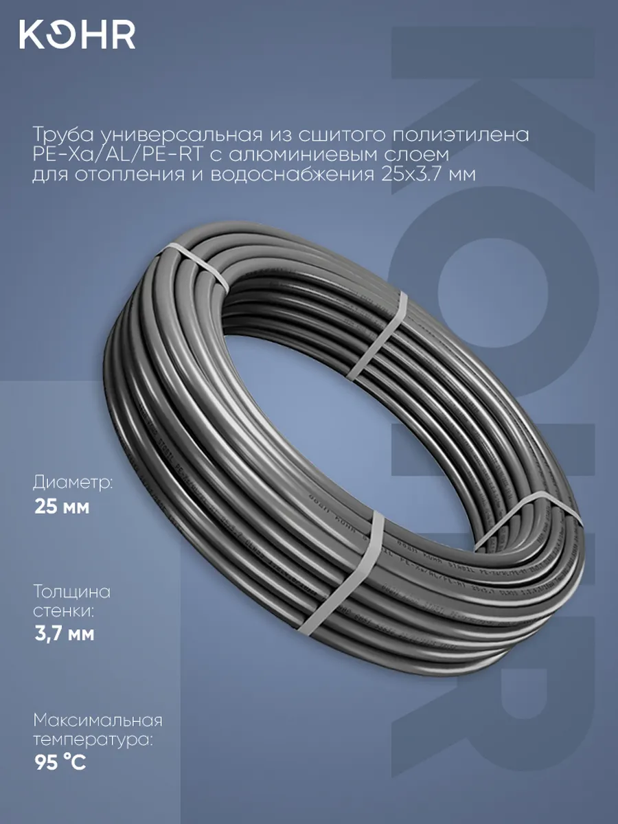 Труба Stabil PE-Xa AL PE-RT 25х3,7 серая отрезок 001м. Термокит