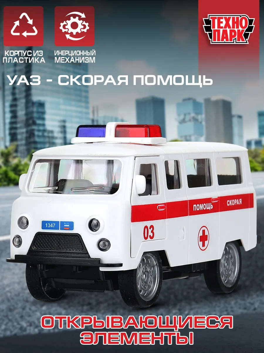 Машина пластиковая скорая UAZ 452 12 см. Мир игрушек и товаров для детей