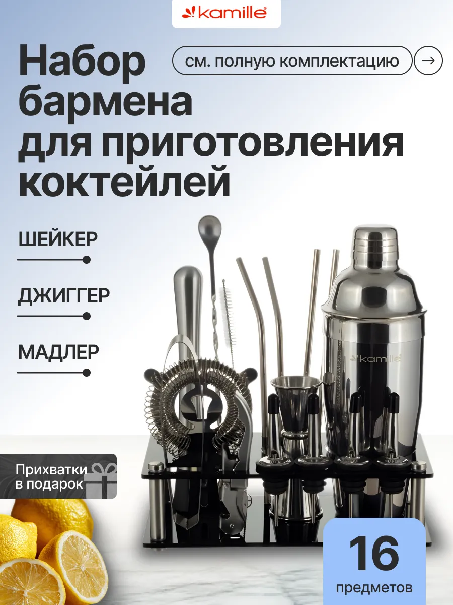 Набор бармена 16 предметов для приготовления коктейлей. Semily