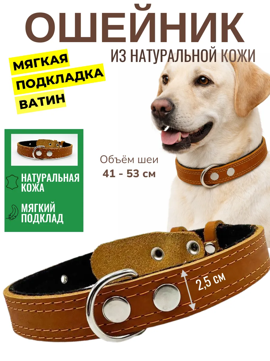 Ошейник для собак кожаный с ватином оранжевый. Fluffy’s Tail