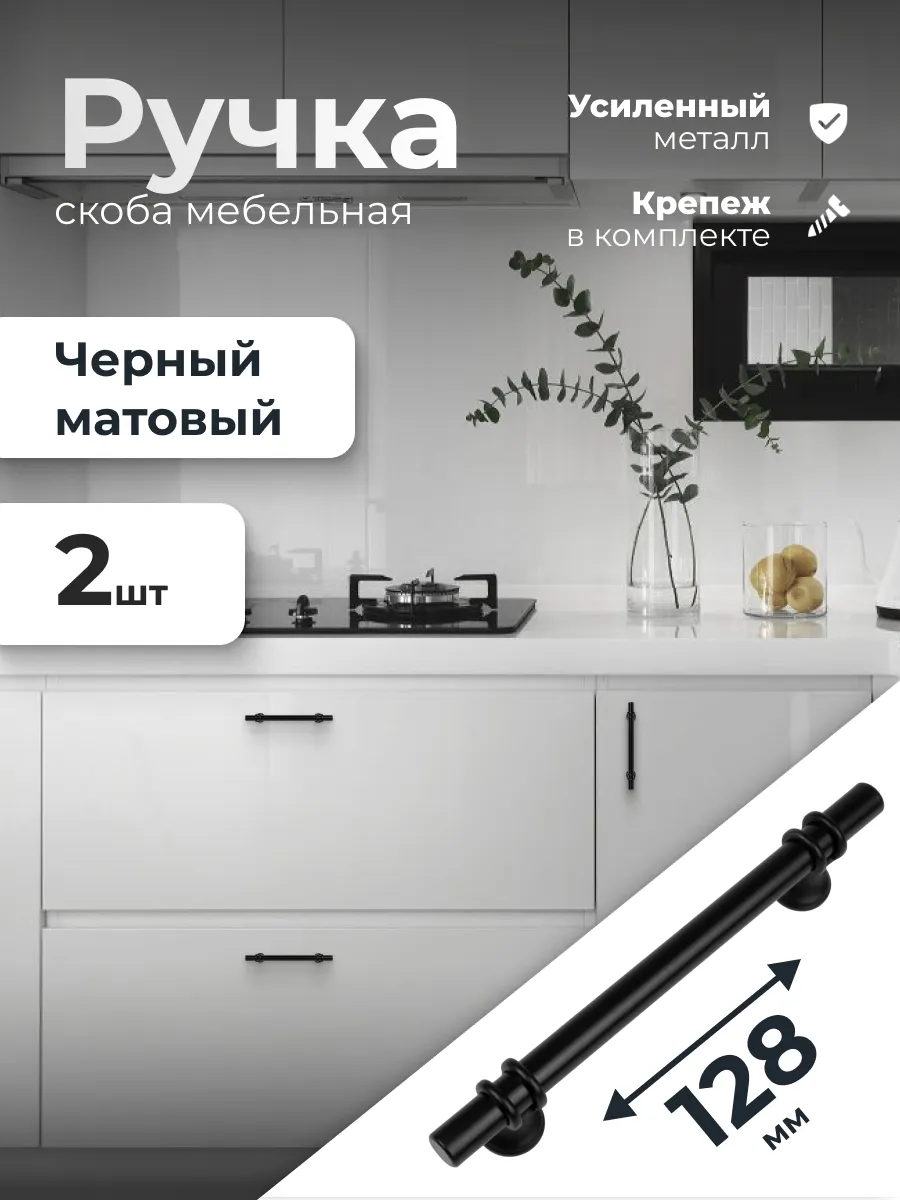 Ручка скоба 128 мм черный матовый 2 шт. ИП Синельщиков В. А.