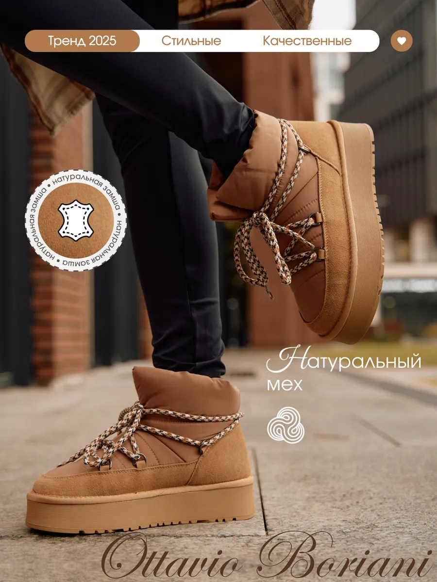 🔥 По акции «Рубли за отзыв» вы сможете вернуть 750 рублей на баланс Wildberries, если оставите отзыв о товаре «Угги зимние натуральные короткие на платформе со шнурками. OTTAVIO BORIANI».