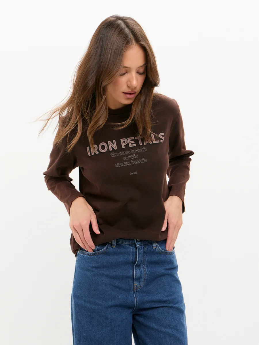 Лонгслив с принтом надписью и вареным эффектом, варенка. TIM&JOY