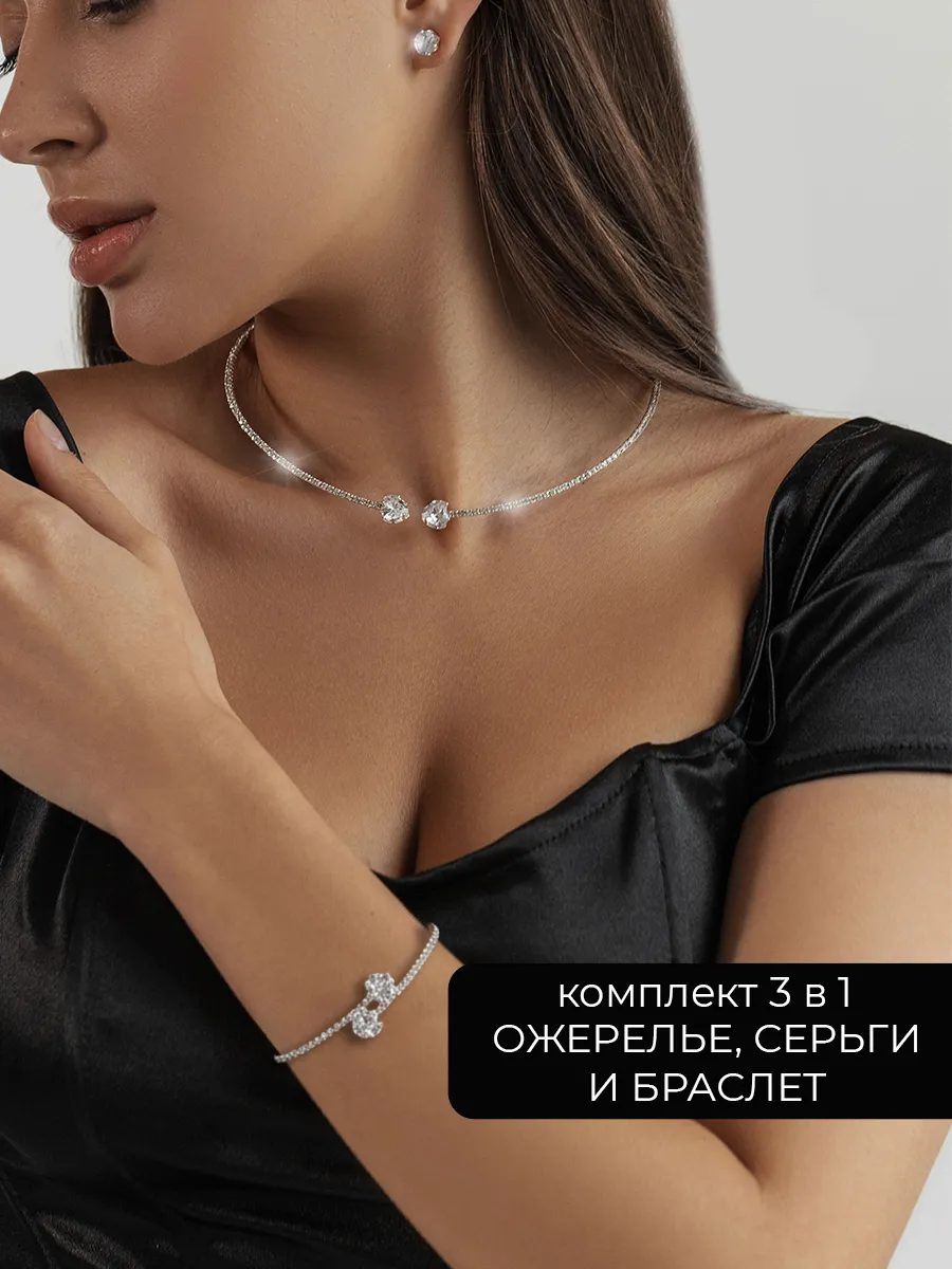 Главная / Бижутерные украшения / Набор бижутерии колье серьги браслет. Flevo
