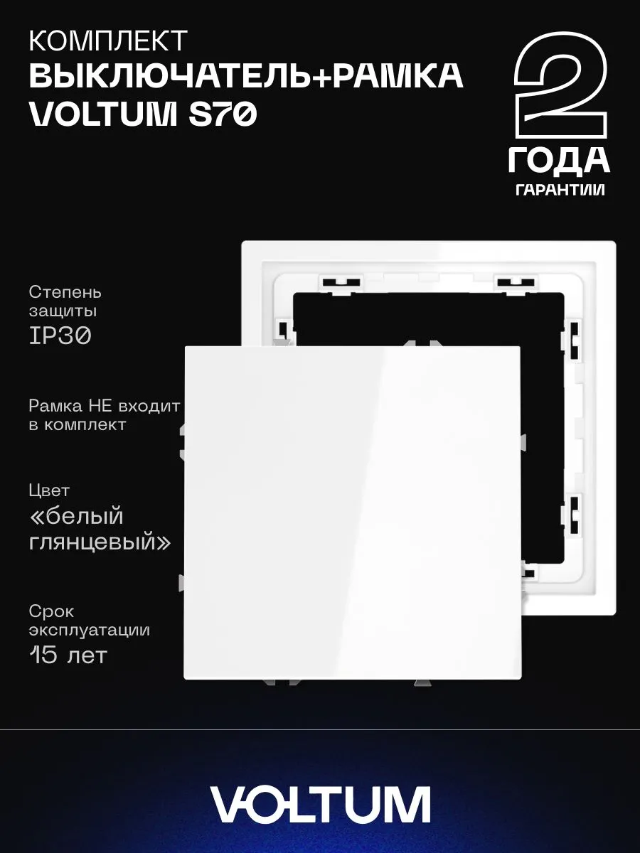 Комплект выключатель одноклавишный и рамка белый глянцевый. VOLTUM — Официальный магазин