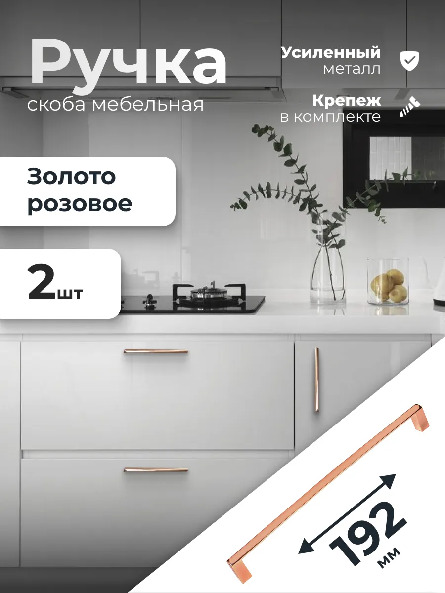 Ручка скоба 192 мм золото розовое 2 штуки. ИП Синельщиков В. А.