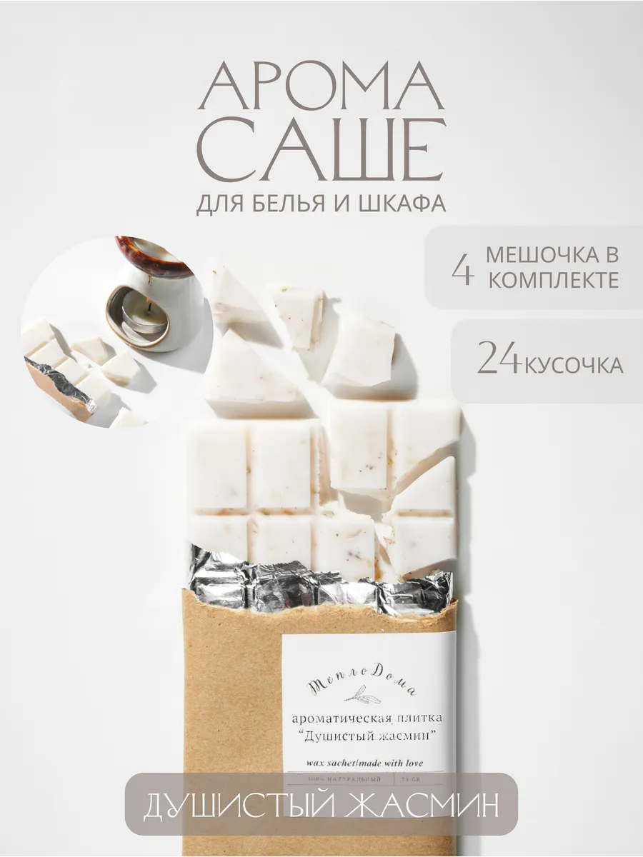 Набор из 12 ароматических саше для мелтсов, наполненных душистым жасмином. Позволяет ароматизировать ваше белье и создать уютную атмосферу в доме. Подходит для любителей нежных и романтичных запахов. Можно использовать как в качестве ароматизатора для белья, так и как подарок для друзей и близких.