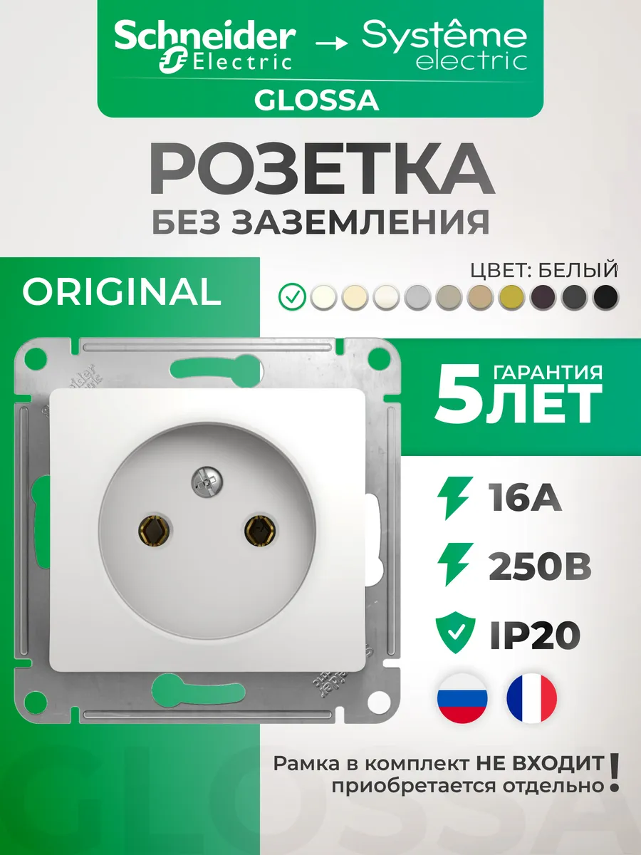 Розетка белая без заземления Glossa. Розетки и выключатели