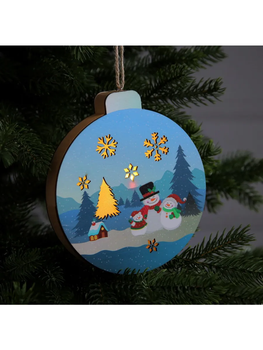 🔥 По акции «Рубли за отзыв» вы сможете вернуть 200 рублей на баланс Wildberries, если оставите отзыв о товаре «Деревянная ёлочная игрушка «Семья снеговиков» с подсветкой. KoroBoom Shop».