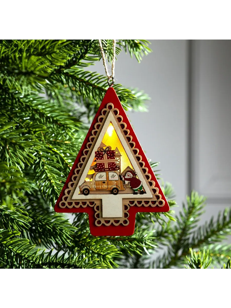 Деревянная ёлочная игрушка «Ёлка с Дедом Морозом и машиной». KoroBoom Shop
