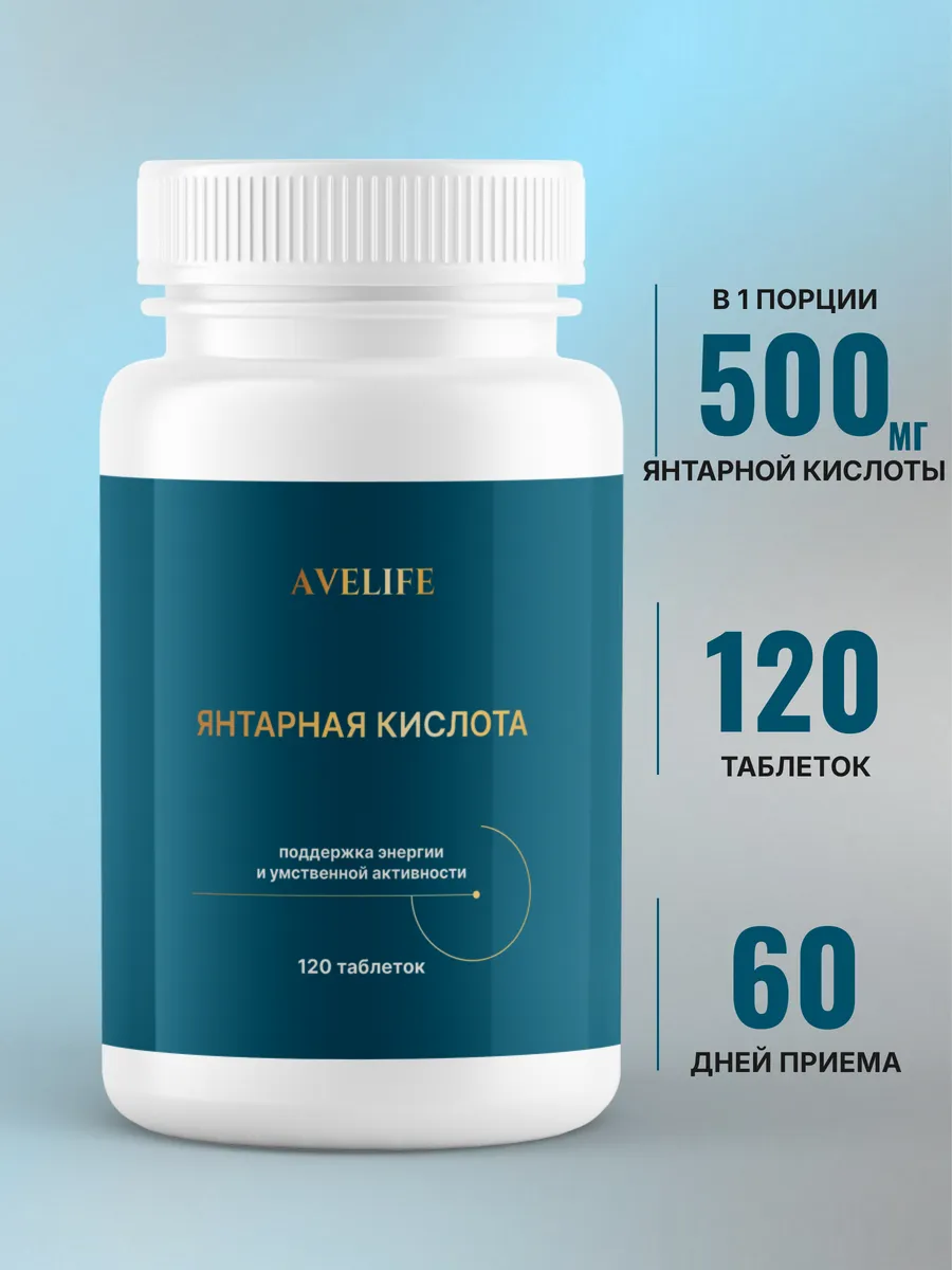 Янтарная кислота 500 мг 120 таблеток. AVELIFE