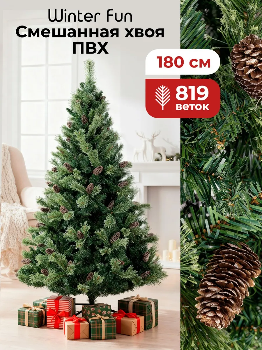 Елка искусственная 180 см пушистая новогодняя с шишками ПВХ. ЦИФРОВОЙ РИТЕЙЛ