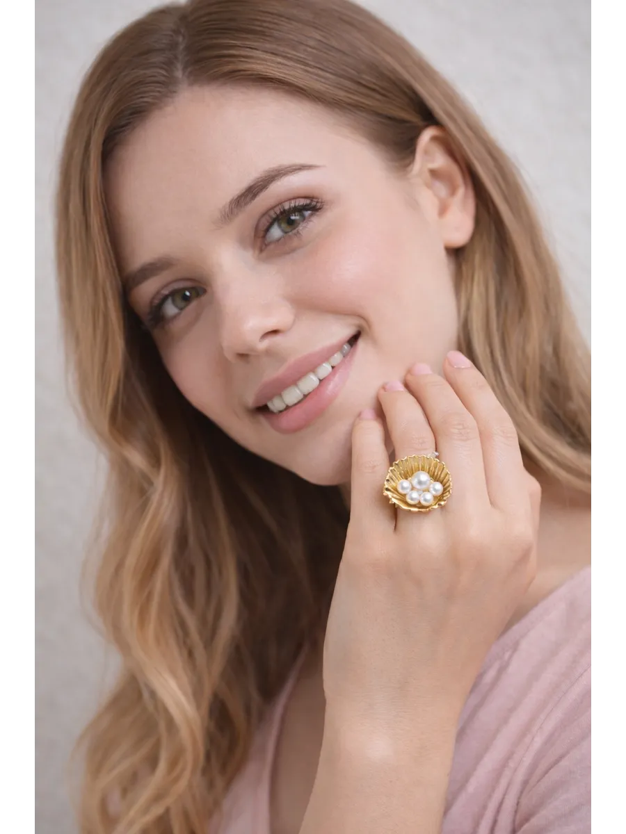 Главная / Бижутерные украшения / Кольцо в виде ракушки с жемчугом бижутерия. TOUCHÉ