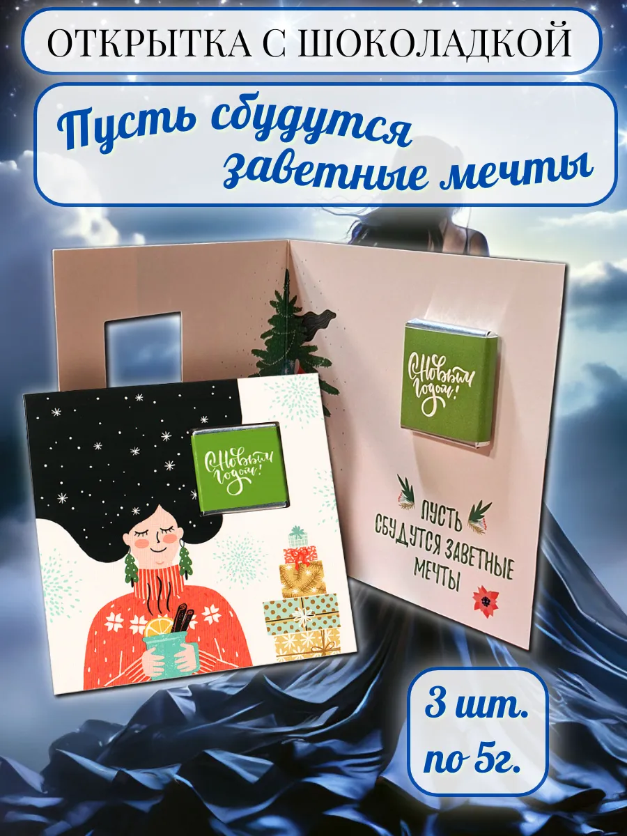 Сделайте праздник еще более уютным с нашей открыткой с шоколадкой «Пусть сбудутся мечты». Этот милый подарок подойдет для любого случая, а шоколадка весит от 3 до 5 грамм, что делает ее идеальной для маленьких детей или для тех, кто любит маленькие кусочки шоколада. Открытка с шоколадкой станет прекрасным дополнением к любой свадьбе, имениннице или просто к обычному дню.