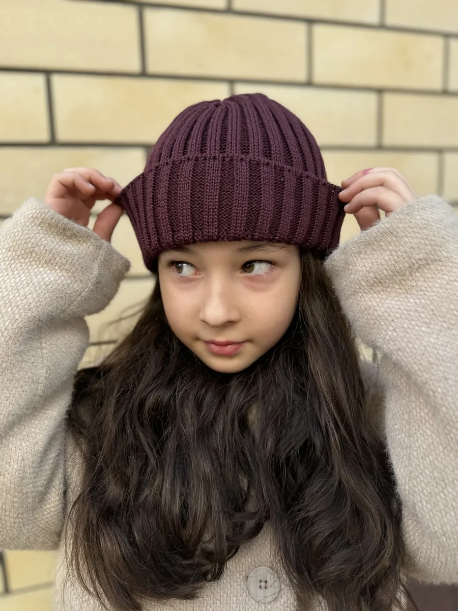 Шапка вязаная короткая лапша с отворотом детская. Mali Brand