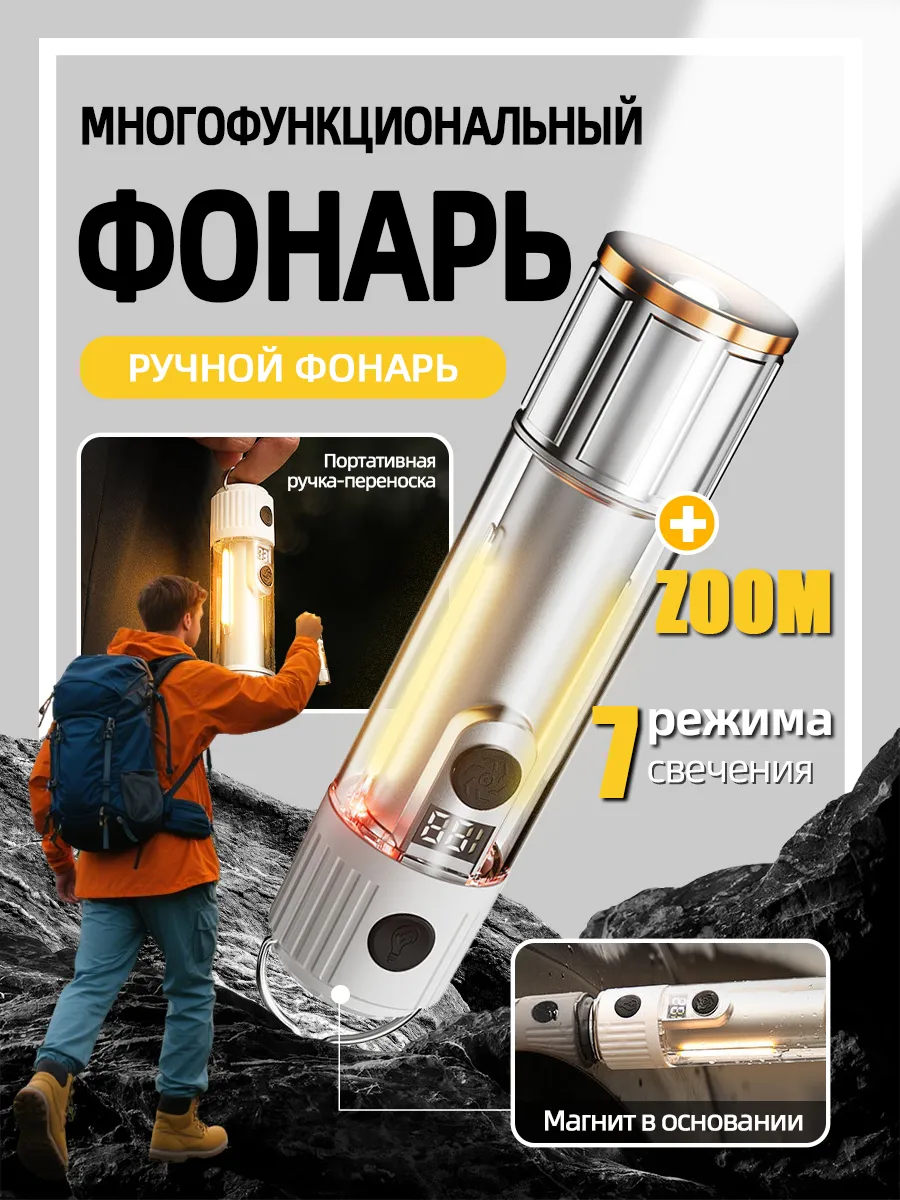 Фонарик аккумуляторный ручной с магнитом и Power bank. LUXGOAT-MALL