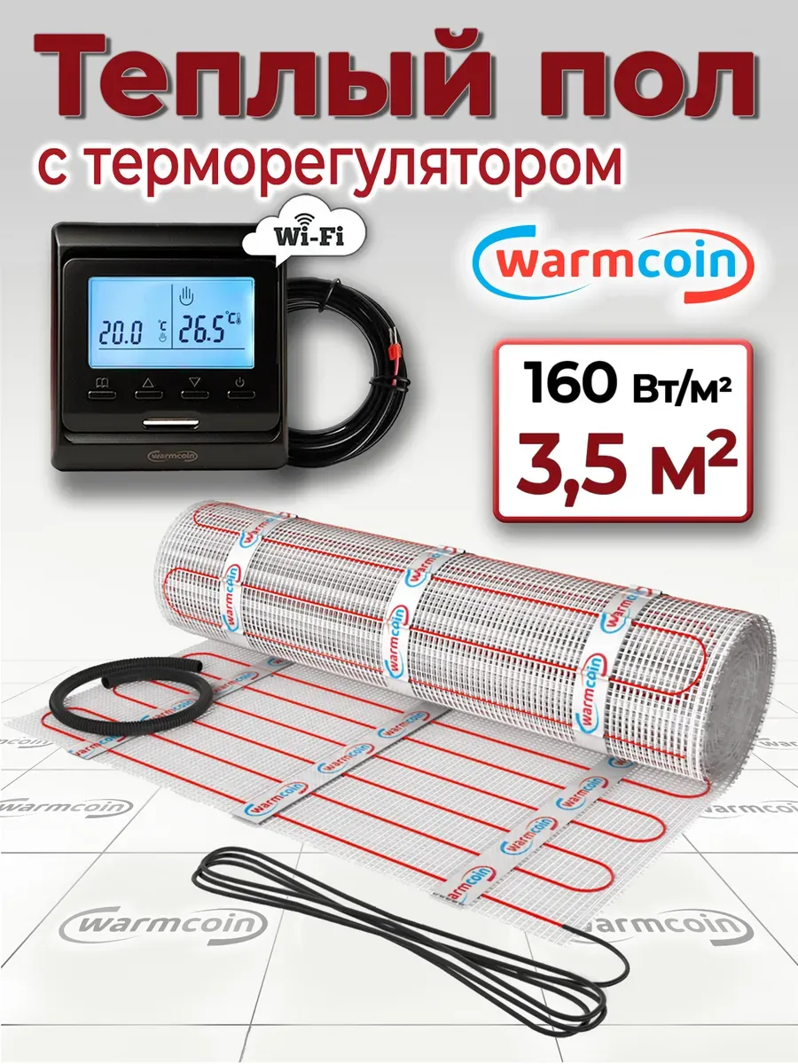 Теплый пол электрический с терморегулятором Wi-Fi 3,5м2. Warmcoin официальный магазин