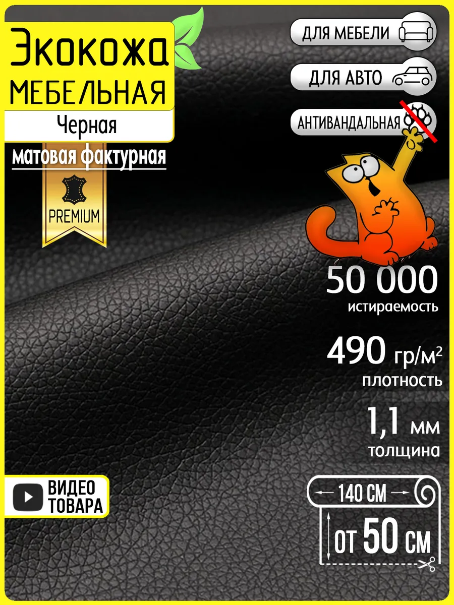 Экокожа для мебели черная Colt black, 50х140см. БинБег
