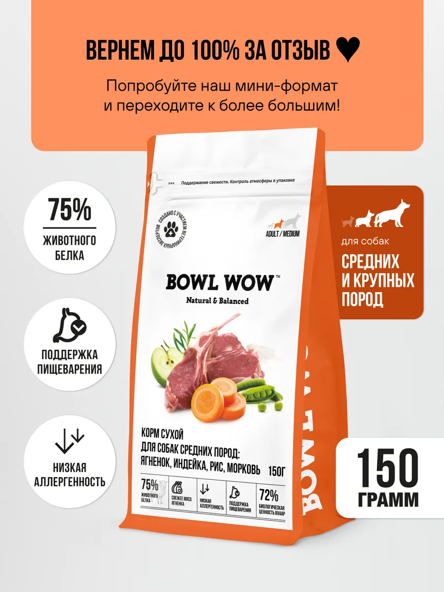 🔥 По акции «Рубли за отзыв» вы сможете вернуть 130 рублей на баланс Wildberries, если оставите отзыв о товаре «Корм сухой для собак средних и крупных пород с ягненком и мо…. BOWL WOW».