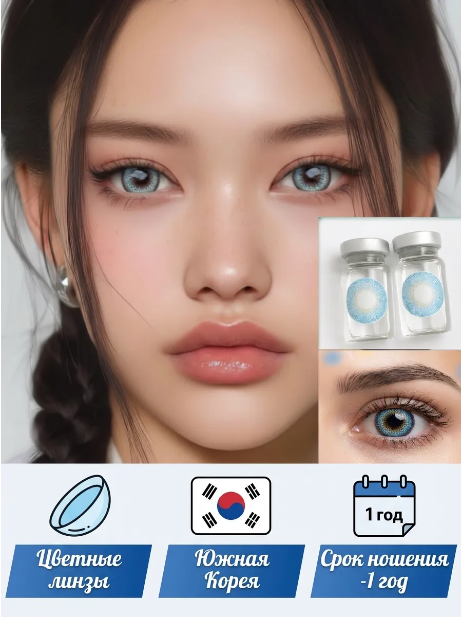 Цветные линзы Y2K для глаз без диоптрий 1 пара 14.3 мм Голуб…. Лучшие товары мира